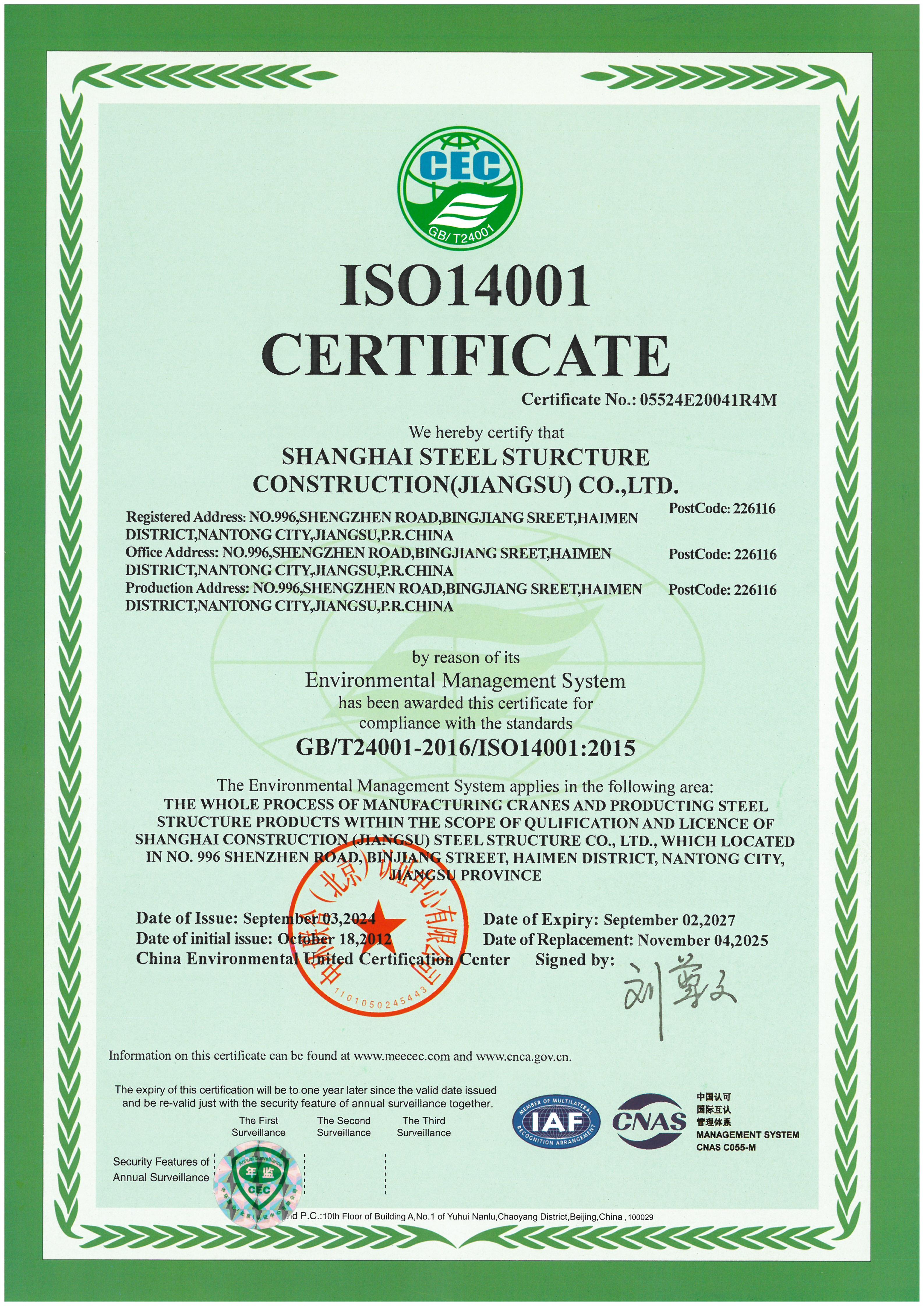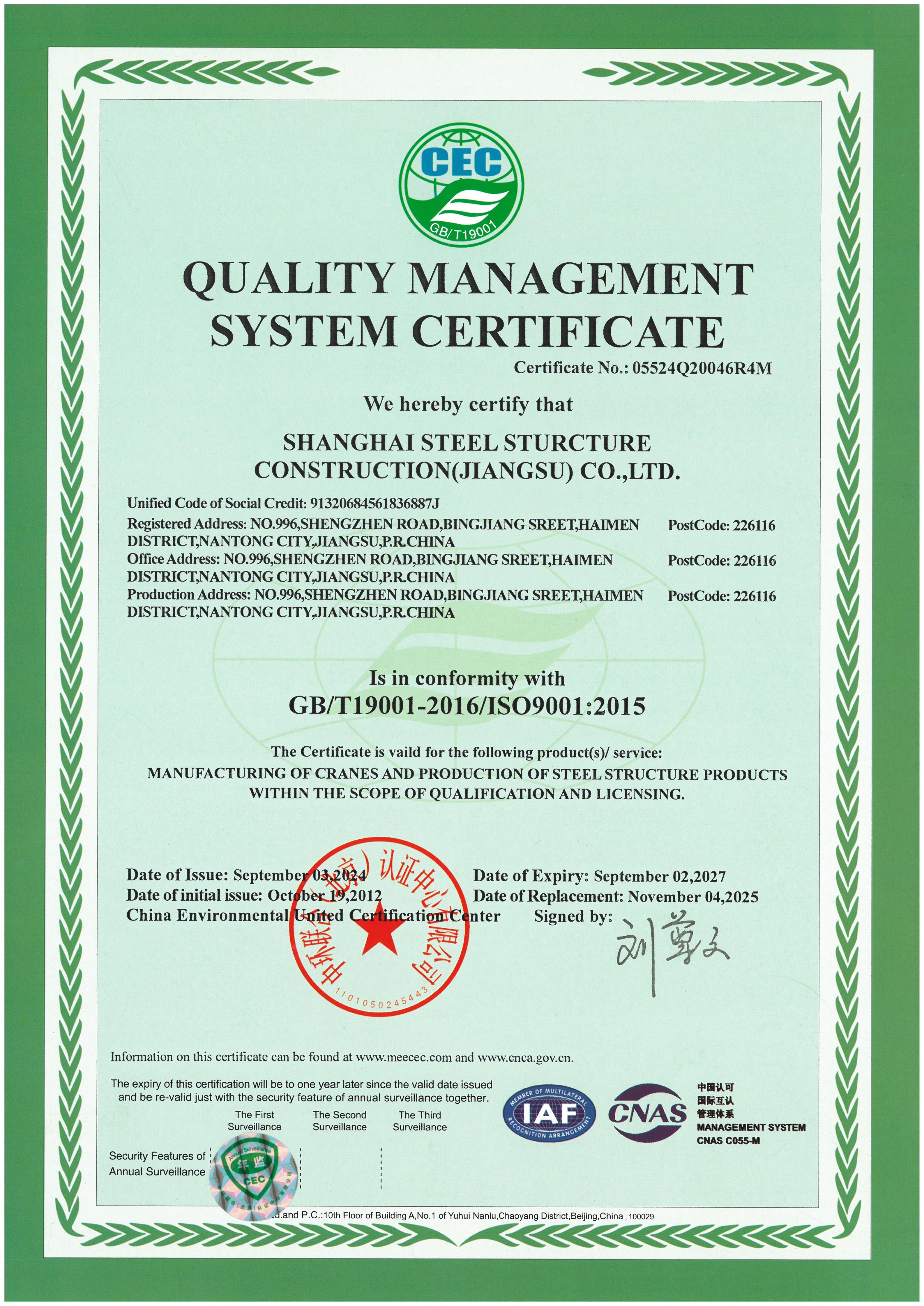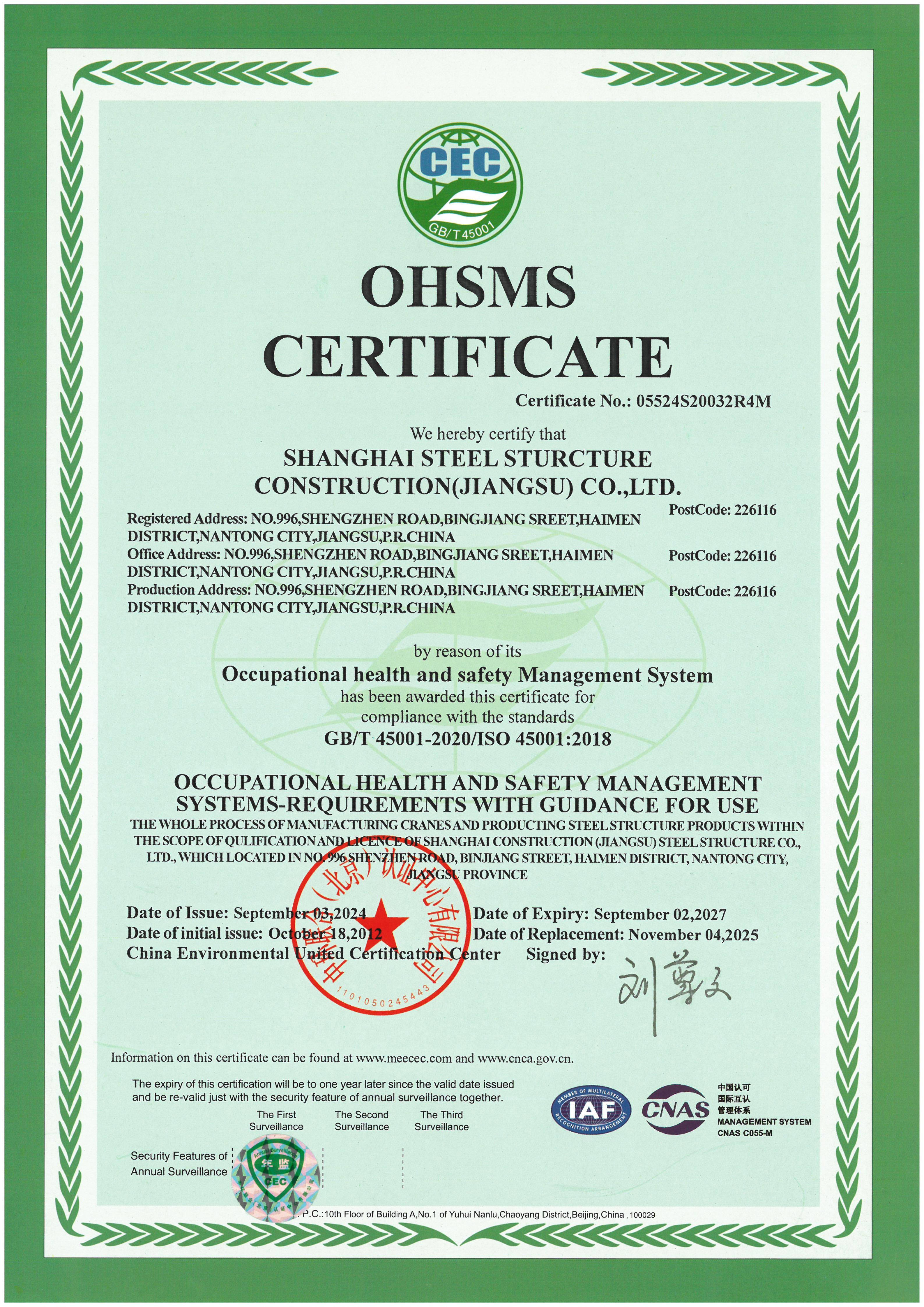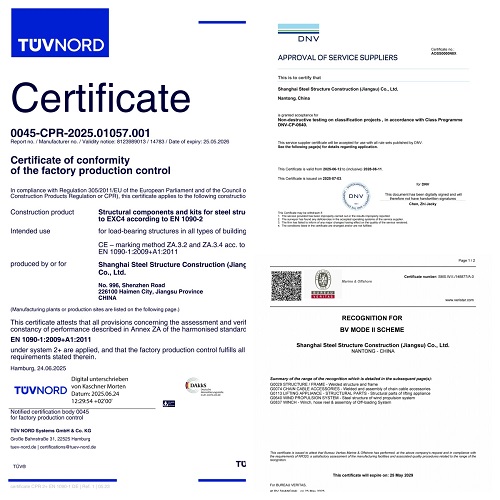 SHANGHAI STEEL STRUCTURE CONSTRUCTION (JIANGSU) CO., LTD. (SCGSS)was founded in September 2010. Located in the core area of Binjiang, Haimen District, Nantong City, Jiangsu Province, the company is just 300 meters away from the 2.5-kilometer-long Xinjianghai River's inland bank. With a total investment of 1.5 billion yuan, it is a large-scale modern steel structure manufacturing enterprise solely established by Shanghai Construction (Group) Co., Ltd. and one of the largest single steel structure industrialization bases in China.