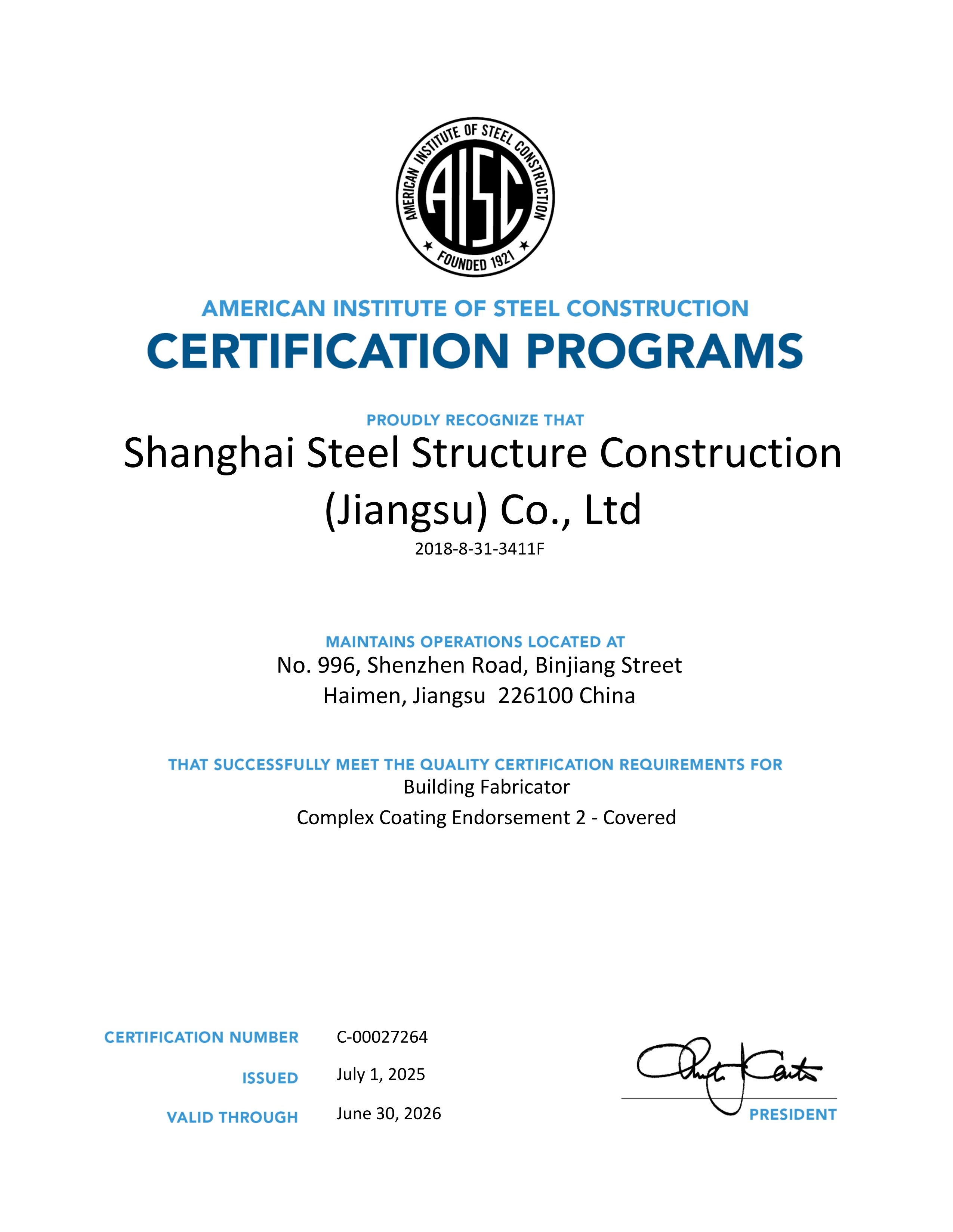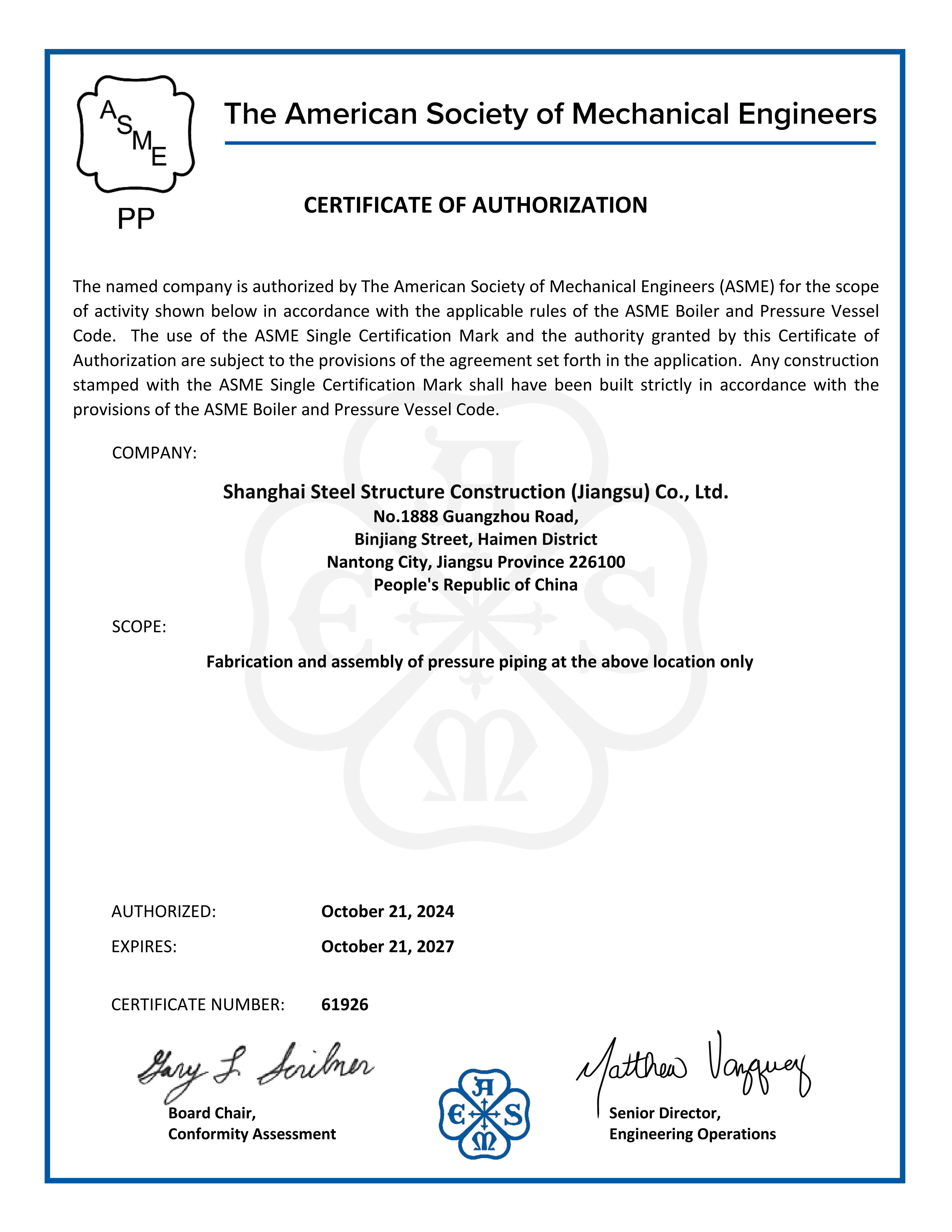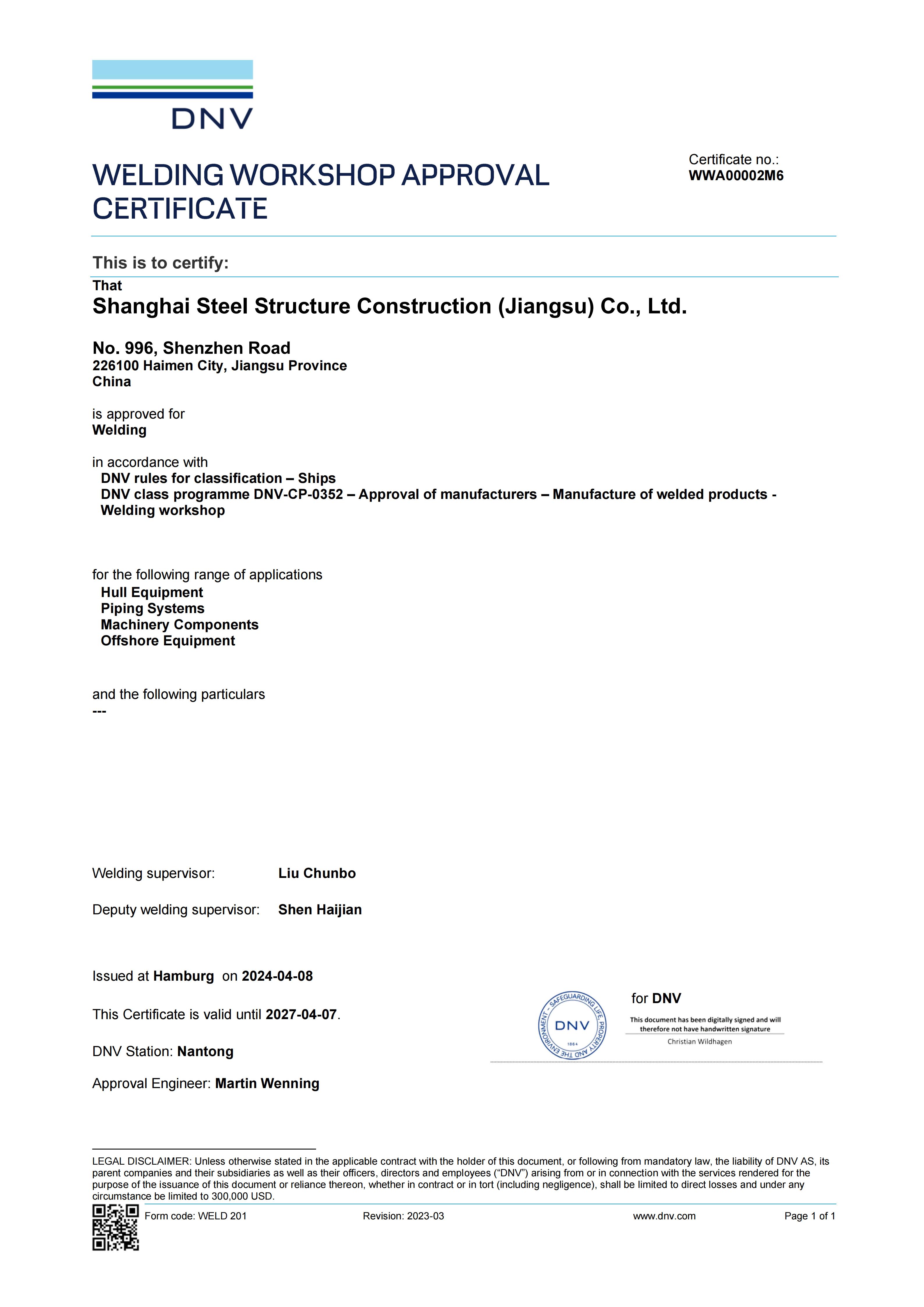 SHANGHAI STEEL STRUCTURE CONSTRUCTION (JIANGSU) CO., LTD. (SCGSS)was founded in September 2010. Located in the core area of Binjiang, Haimen District, Nantong City, Jiangsu Province, the company is just 300 meters away from the 2.5-kilometer-long Xinjianghai River's inland bank. With a total investment of 1.5 billion yuan, it is a large-scale modern steel structure manufacturing enterprise solely established by Shanghai Construction (Group) Co., Ltd. and one of the largest single steel structure industrialization bases in China.