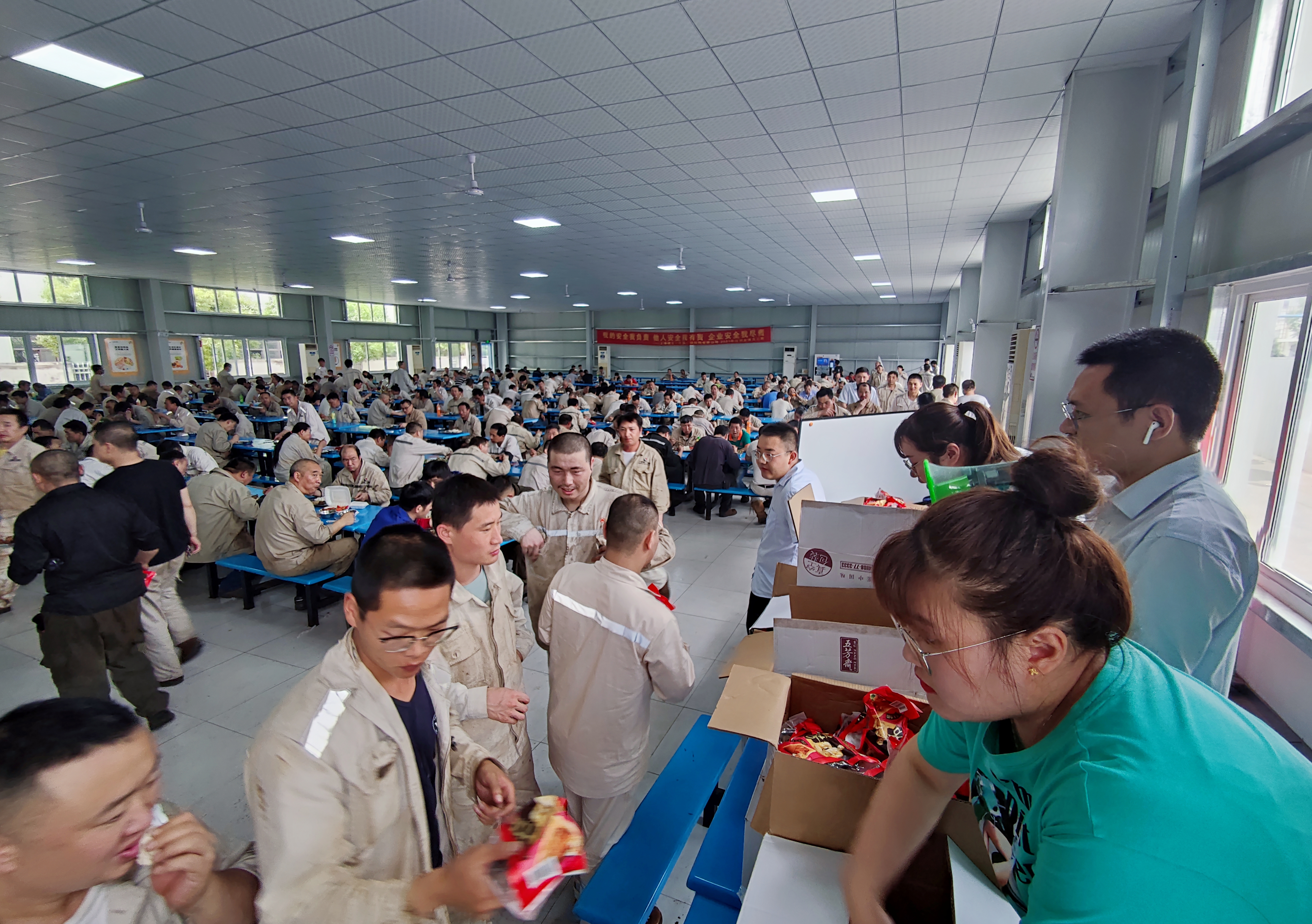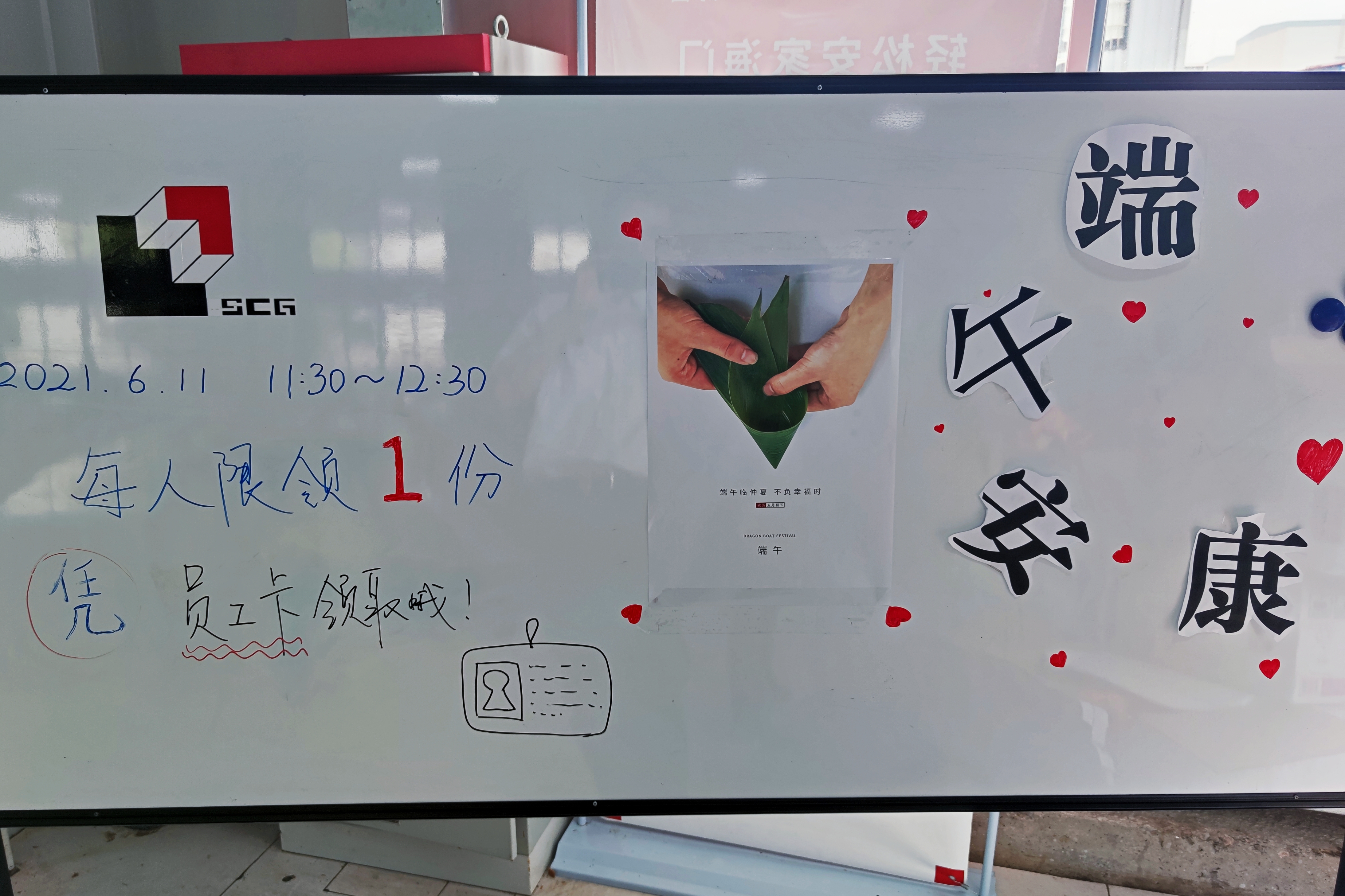“端午临中夏,时清日复长”,我们迎来了六月的盛夏繁华,也迎来了一年一度的传统佳节——端午。为了让公司员工度过一个温馨、和谐的节日,11日中午,公司工会和团委在食堂为大家发放端午福利,献上一份关怀,祝福大家端午安康。 工会和团委的工作人员事先精心绘制了宣传板报,并早早来到现场准备。员工们有序领取,欣喜地接过这份心意。